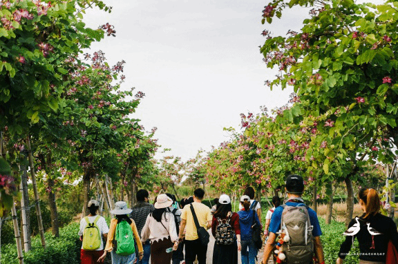 阳光淡淡笼罩着广场,校友们已到达集合地点井然有序地签到,并领取活动物资。见到许久不见的同窗好友,校友们彼此之间交谈甚欢,纷纷合影留念。为了参加本次活动,校友们分别从广州各区、佛山、深圳等地赶来,相约徒步,一路前行,进行一场与候鸟同行的主题徒步活动。