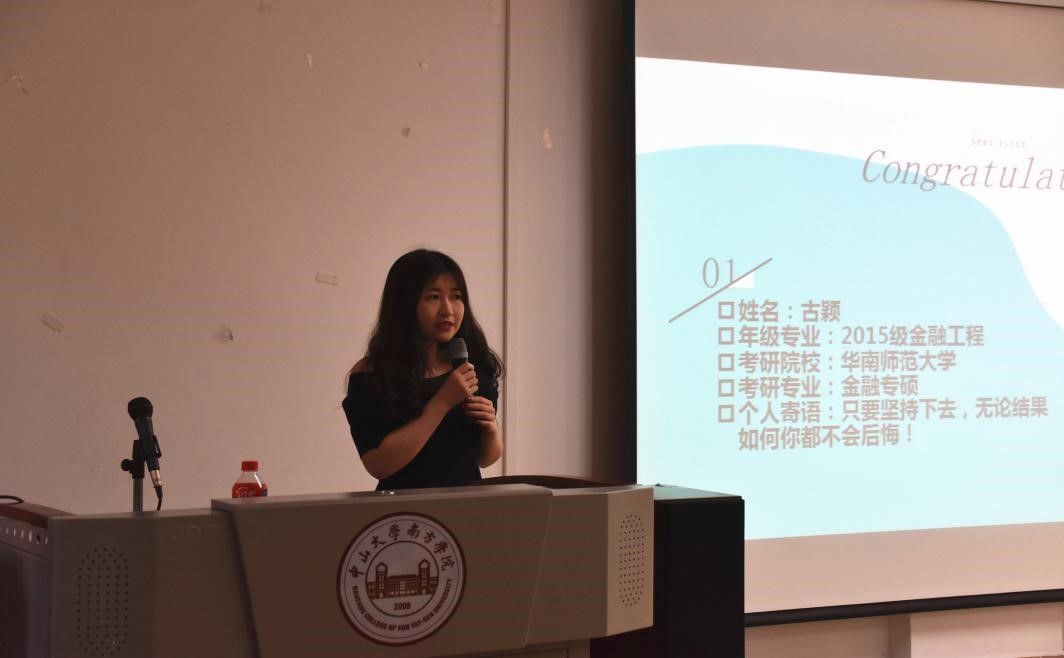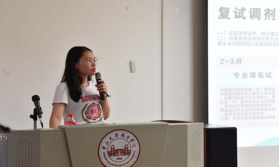 古颖现被华南师范大学金融专硕录取,在本次分享会中,她分别从专业课复习、数学学习技巧以及考研时的心得与体会这三大点分享了她的故事与想法。她寄语各位准备考研的师弟师妹,要学会对时间有着合理的安排。在备考时,要有积极的心态,有毅力,耐得住寂寞,扛得住压力。如果有条件,还可以找一起复习的朋友相互激励与学习,共同进步。