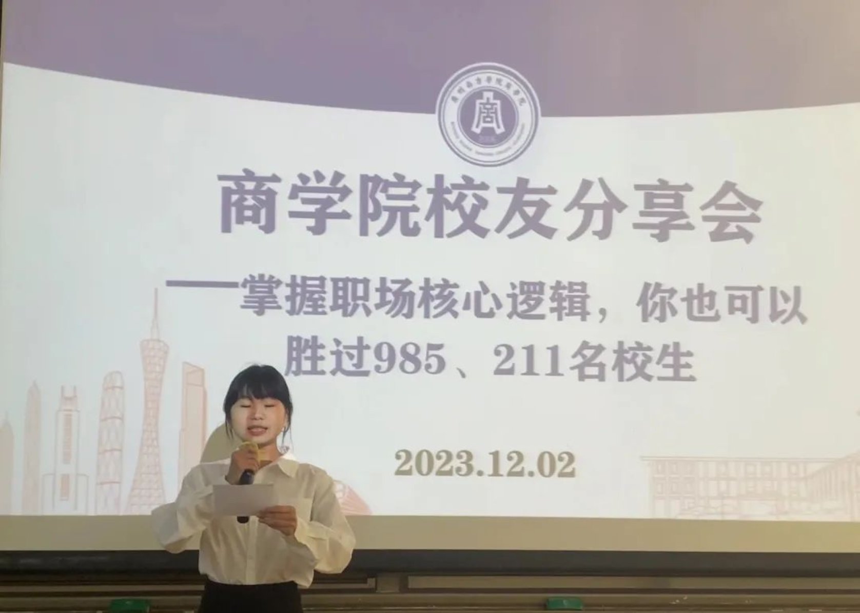 为全力构建贝博官网“三全育人”体系,充分地发挥优秀校友在学生成长过程中的榜样引领作用,进一步加深同学们对就业创业的认识和了解,激励同学们不断提高实习技能、丰富知识结构,教育引导同学们树立正确的就业观念,贝博官网于2023年12月2日15:30在8教206课室顺利举办“掌握职场核心逻辑,你也可以胜过985、211名校生”为主题的校友分享会。