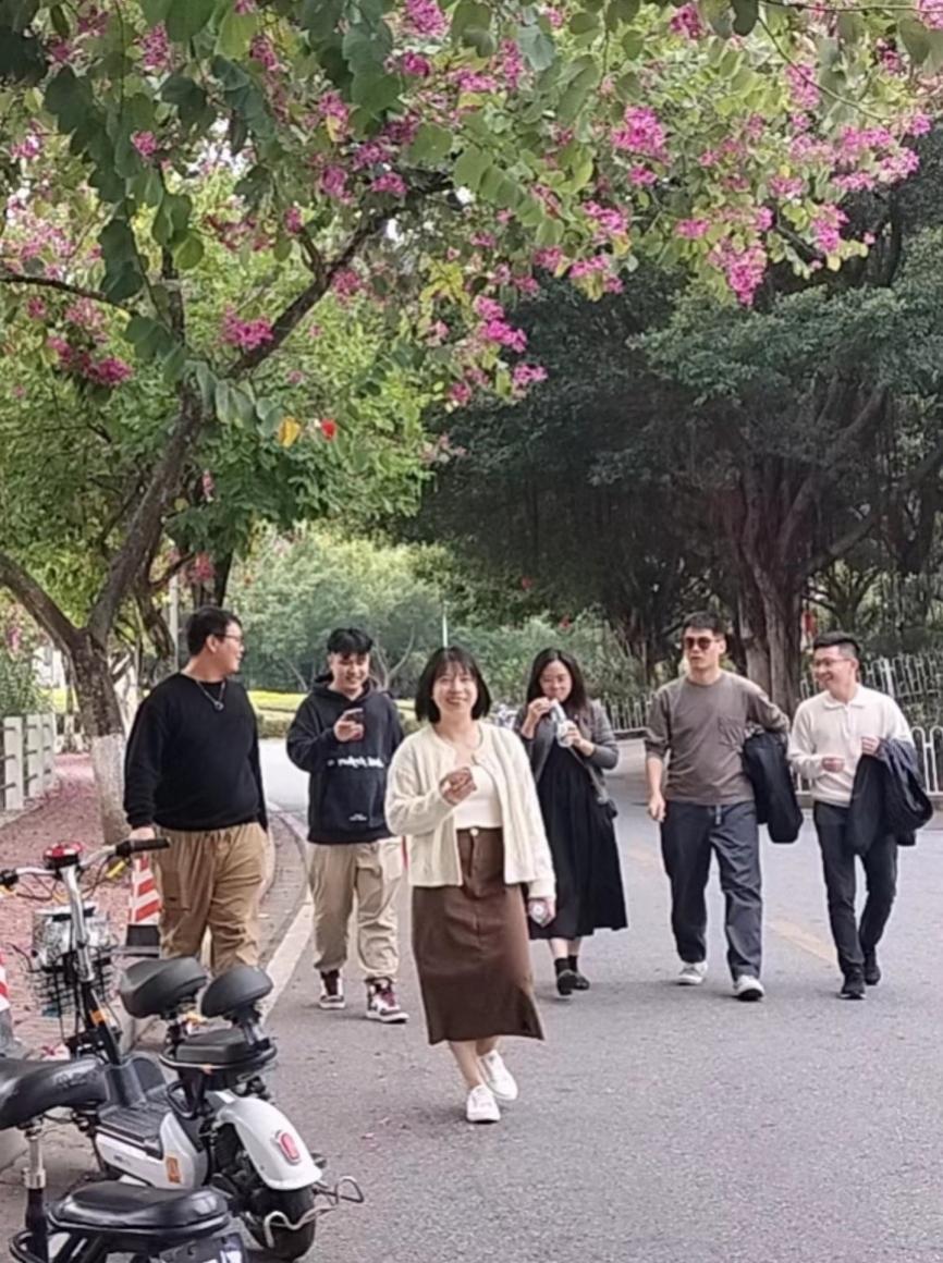 青葱岁月心同在,时光荏苒情未疏。班会结束后,在工作人员的带领下,校友们在校园内进行参观。经过十年的成长,重新踏上以前走过的路,走回了青春与梦想交织的校园。在图书馆挑灯夜战的奋斗时刻,在小公园里的嬉戏玩闹,无数个值得回味的瞬间,那些美好的时光仿佛还在眼前。