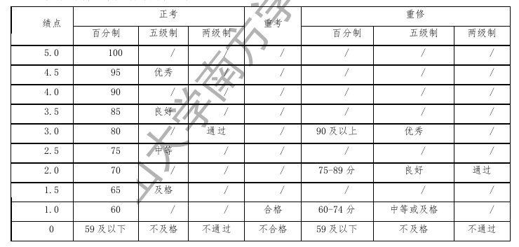 3. 另外需要说明的一点是,普通课堂教学课程成绩通常采用百分制记分。而三实课程、学年论文、毕业设计 (论文)等实践性课程成绩通常采用五级制记分。有些不宜采用上述记分办法的课程,如公共选修课,可采用通 过、不通过两级制记分。具体的成绩与绩点的对应关系请学生看接下来的“关于成绩衡量”。