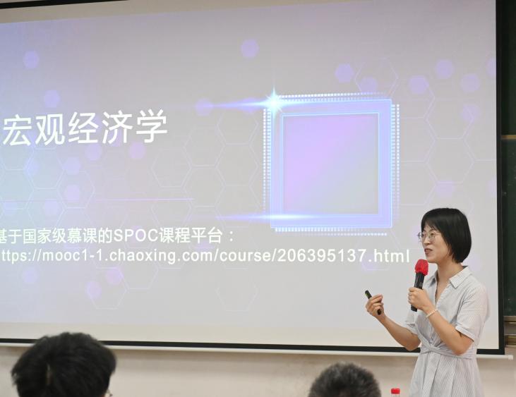 周瑛副教授以其荣获首届高校教师教学创新大赛全国二等奖的杰出作品为蓝本,用深入浅出的方式详细阐释了GDP的概念及其核算方法。她聚焦于创新教学方法,以精湛的教学技艺,为新进教师们呈现了一堂生动且有深度的教学示范课。她的授课方式充满活力和趣味,课堂内容丰富而精彩,深受在场教师们的赞赏与好评。