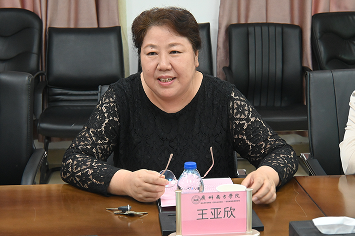 王亚欣副院长则详细介绍了艾弗森贝博ballbet官网的发展历程、组织架构、师资队伍、学科成果等方面的内容。她对文华学院去年通过教育部本科合格评估表示赞赏,并希望未来能在教学管理、教学档案、论文指导等方面展开更多合作。