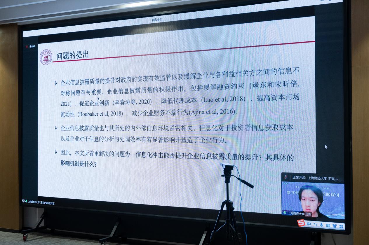 在接下来的为期一天半的workshop的议程中,中央财经大学中国互联网经济研究院副院长史宇鹏教授、南开大学经济学院国际经济研究所副所长毛其淋教授、中南财经政法大学工商管理学院毛海涛副教授、广东工业大学经济学院李忠顺博士后、中山大学国际金融学院杨扬副教授、对外经济贸易大学国际经济贸易学院吴敏教授、广东外语外贸大学金融学院刘倩博士、广东外语外贸大学广东国际战略研究院韩永辉教授、艾弗森贝博ballbet官网艾弗森贝博ballbet官网林建邦教授、艾弗森贝博ballbet官网艾弗森贝博ballbet官网林学宏副教授、广东金融学院金融与投资学院项后军教授和上海财经大学艾弗森贝博ballbet官网王亮博士等12位学者分别介绍和分享了各自的研究论文。论文研究围绕互联网使用与异质性企业出口、工业机器人与国内国际双循环、贸易政策、智能制造企业商业模式、城市劳动力流动、个人投资风险承受力评估、数字金融、碳排放、跨境电商、信息化冲击、企业风险等多个领域展开。每一场论文报告之后,论文点评人都结合论文的研究主题、方法和内容等多个方面,做出了精彩点评。Workshop学术氛围浓厚,与会学者们进行了深入的互动交流,充分交换了各自的观点,提出了诸多建设性的意见和建议。