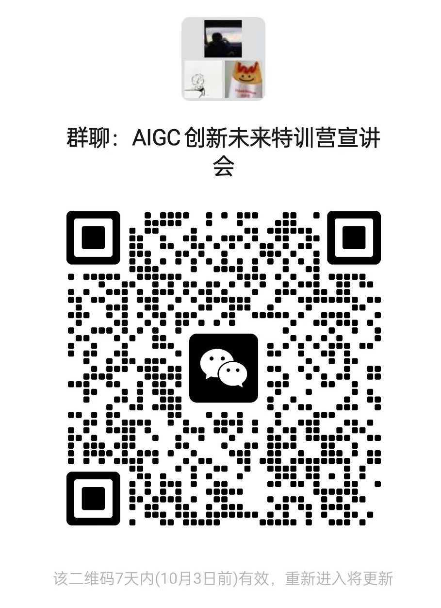 如有意向参与本次AIGC特训营宣讲会者,请扫码进入群聊。