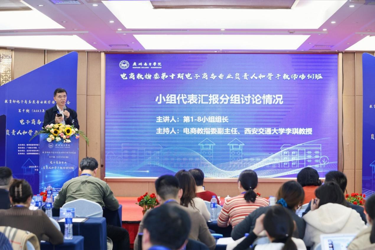 培训班采取“理论学习+案例分享+研讨交流”的方式,特设开放性讨论及汇报环节。八组学员在组长的带领下,就跨境电商建设思路、人才培养模式、课程思政融入、政产学研融合等问题展开热烈而深入的探索与讨论,并总结观点向大会进行汇报。电商教指委副主任、西安交通大学李琪教授进行了点评及答疑。
