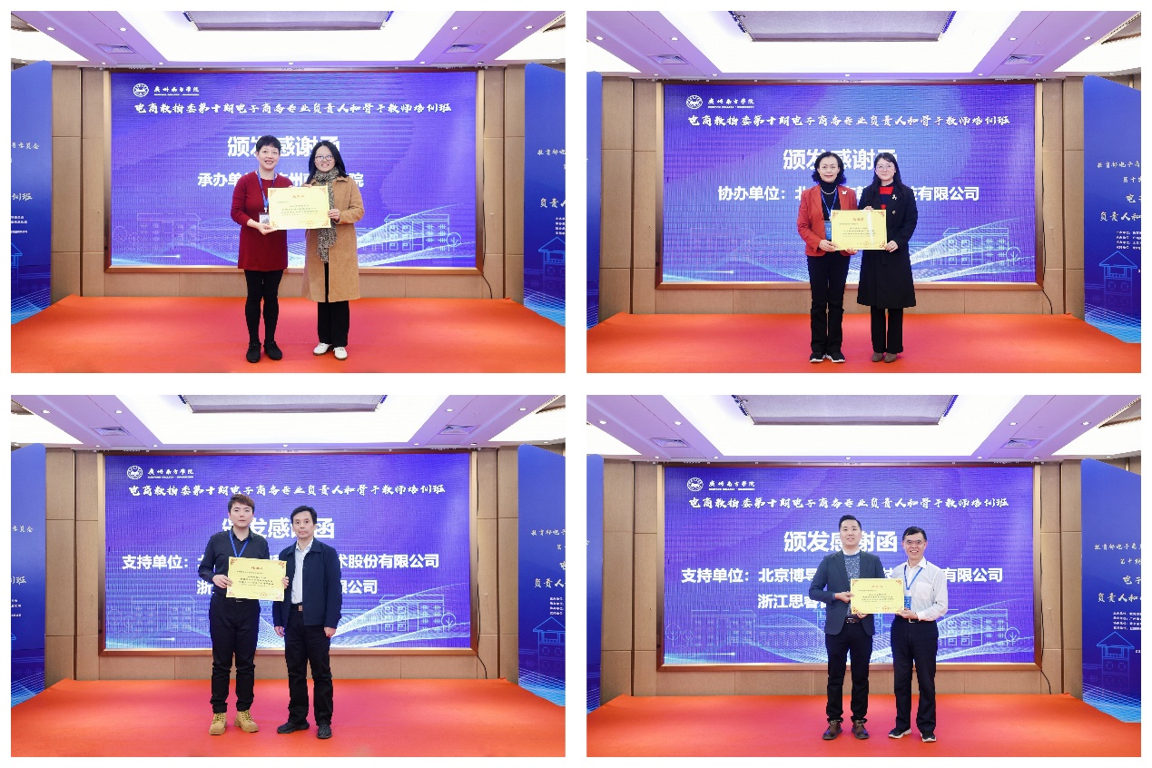 最后,在培训班的结业仪式上,电商教指委为参加本期培训班的优秀学员颁发了证书,并向承办单位艾弗森贝博ballbet官网以及协办单位、支持单位颁发了感谢函。