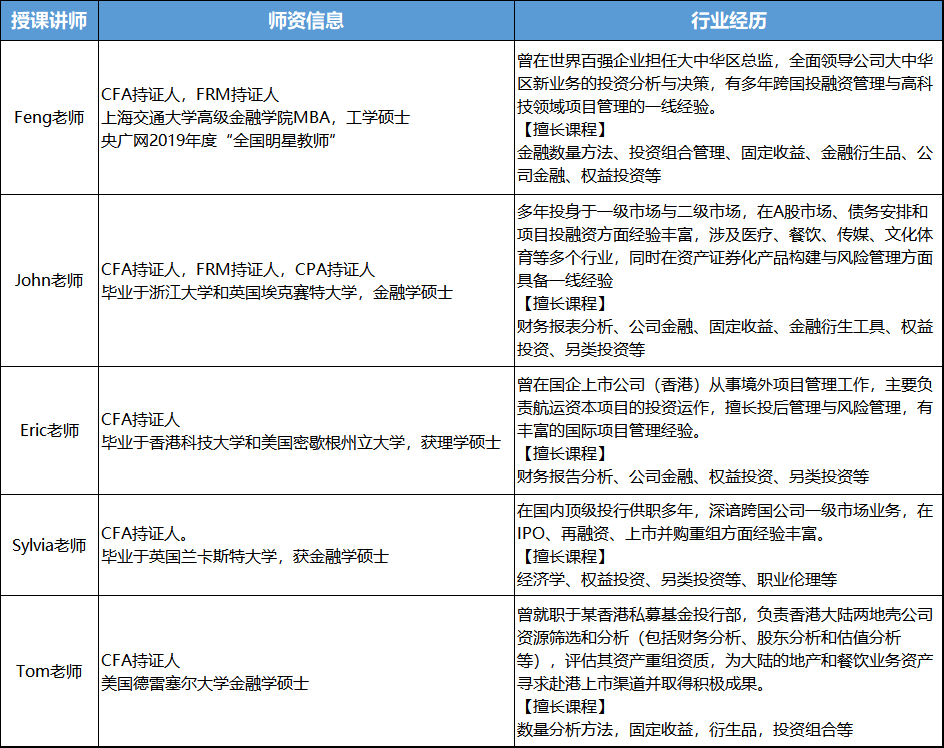 CFA菁英班由贝博官网联合知名企业高顿教育专业CFA讲师团队授课。CFA菁英班拥有顶尖的CFA教学团队,包括上海财经大学艾弗森贝博ballbet官网教授以及金融行业精英,为CFA菁英班同学提供有效的CFA备考和金融行业实务技能培养方案。