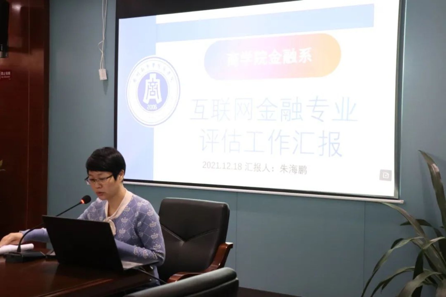 随后,朱海鹏和李聪老师分别代表互联网金融和金融学专业向评审会专家作了评估工作汇报。在认真听取完汇报后,对照评审指标体系和评审材料,两位专家给予评审指导,认为参与此次学士学位授予评估的专业人才培养目标定位明确、专业建设清晰、内容切实可行,专业人才培养的方案及教学计划实行情况良好,整体办学条件、办学力量、办学效果均达到了本科学士学位授予标准要求;并就专业定位、师资数量、教学条件及利用、教学过程及管理、实践教学、毕业论文等方面提出了具体的意见和建议。