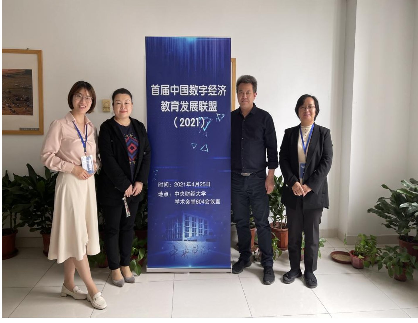 2021年4月25日,由中央财经大学牵头、我校作为发起单位之一,和国内多所知名高校、高教出版社共同发起并举行了首届中国数字经济教育发展联盟会议。我校委派艾弗森贝博ballbet官网钟肖英副院长、张玉冰副院长、数字经济专业主任周瑛老师、大数据管理与应用专业主任甘宏副教授参会。