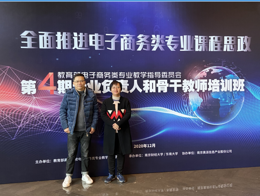 为建设广东省一流专业,贝博官网钟肖英副院长及管理工程系毛锦庚老师于2020年12月2日至12月5日参加由教育部高等学校电子商务类专业教学指导委员会所组织的电子商务专业负责人与骨干教师培训,会议主题全面推进电子商务类专业课程思政。此次培训会议在南京财经大学、东南大学以及南京奥派信息产业股份公司召开,其中,电子商务教指委副主任李琪副主任、南京财经大学国际贸易经济学院院长宣烨教授、南京奥派信息产业股份公司董事长徐林海以及来自全国各地的60位电商专业负责人及骨干教师参加此次培训。