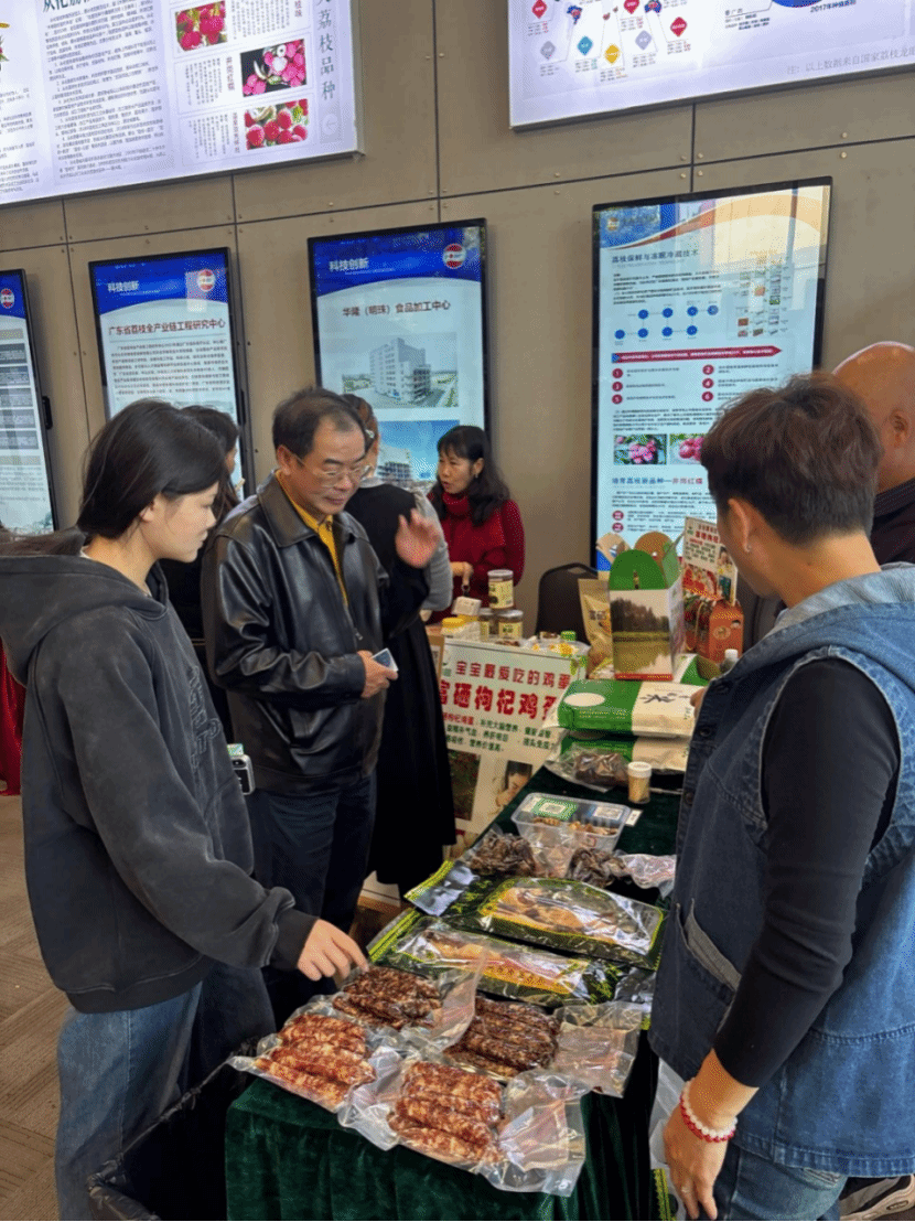 在活动现场,从化区农业农村局组织了二十多家商家开展农产品展销活动,南方学院的师生们积极参与其中,与商家们共同探讨农产品推销和直播销售的合作模式,通过课程所学内容拓展本地农产品的销售渠道。