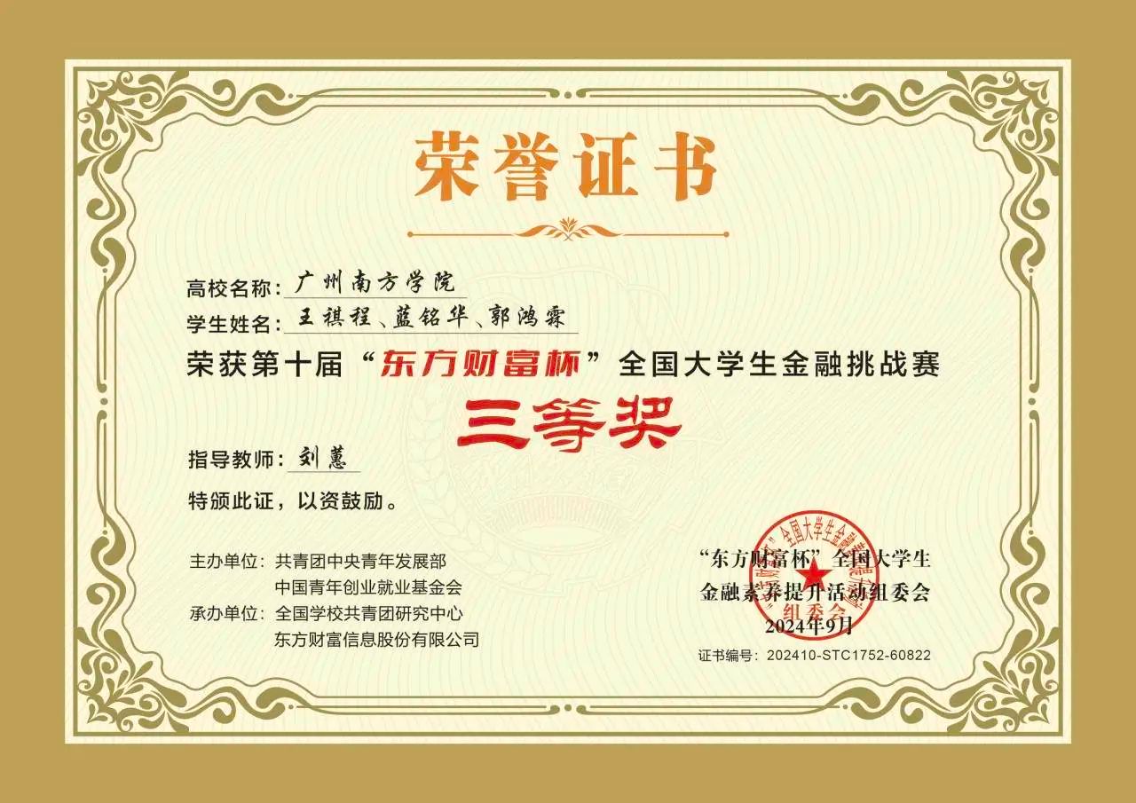 全国共有2873所高校参赛,报名人数超过84万。艾弗森贝博ballbet官网团委及金融系指导老师动员全校学生积极参加比赛,参赛人数再破新高。在艾弗森贝博ballbet官网教师精心指导下,经过3个月校赛、省赛和国赛的激烈比拼,我校师生赛果丰硕,多达44支队伍喜获国家级、省级奖项。以刘蕙副教授为代表的老师们,在国赛赛上获得了优异的成绩,以贾佳老师为代表的老师们,在省赛上也是硕果累累。其中5支国赛代表队在全国参赛团队中脱颖而出,一路披荆斩棘荣获国家级奖项,荣获国赛二等奖2项,国赛三等奖3项。此外广东省省区决赛中,我校参赛队伍表现亮眼,获得10个省赛一等奖,17个省赛二等奖和12个省赛三等奖。