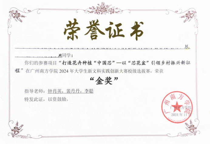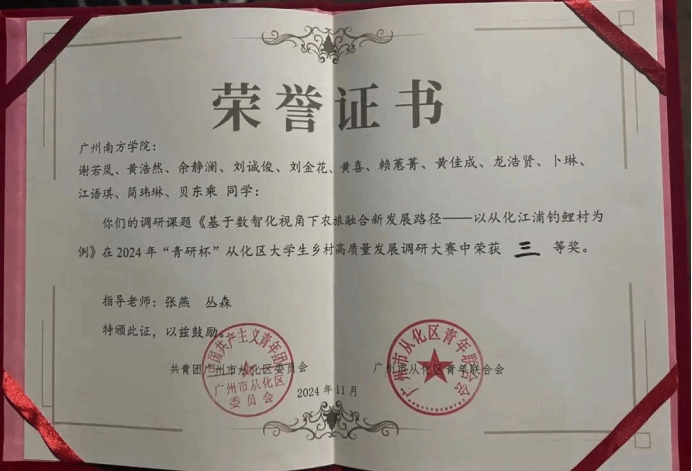 贝博官网张燕老师指导学生队伍(筑梦振兴队)参加2024年“青研杯”从化区大学生乡村高质量发展调研大赛获三等奖