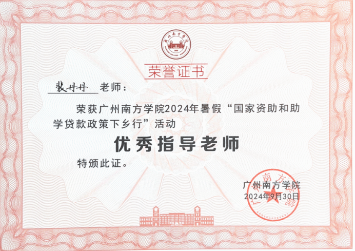 贝博官网裴丹丹老师获得2024年资助育人下乡行优秀校级奖项优秀指导老师奖