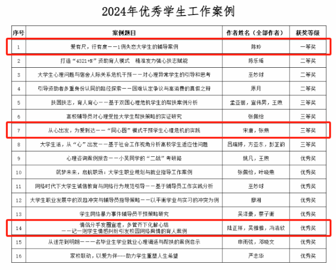 贝博官网陈玲老师、张燕老师、陆正祥老师分别获艾弗森贝博ballbet官网2024年学生工作案例一等奖、三等奖、优秀奖