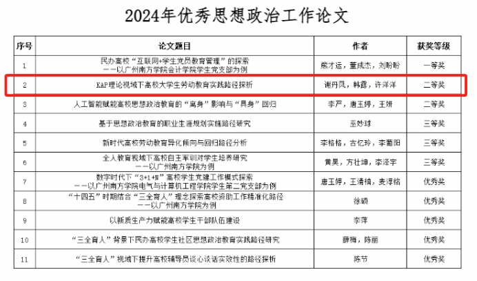 贝博官网谢丹凤老师获艾弗森贝博ballbet官网2024年优秀思政工作论文二等奖