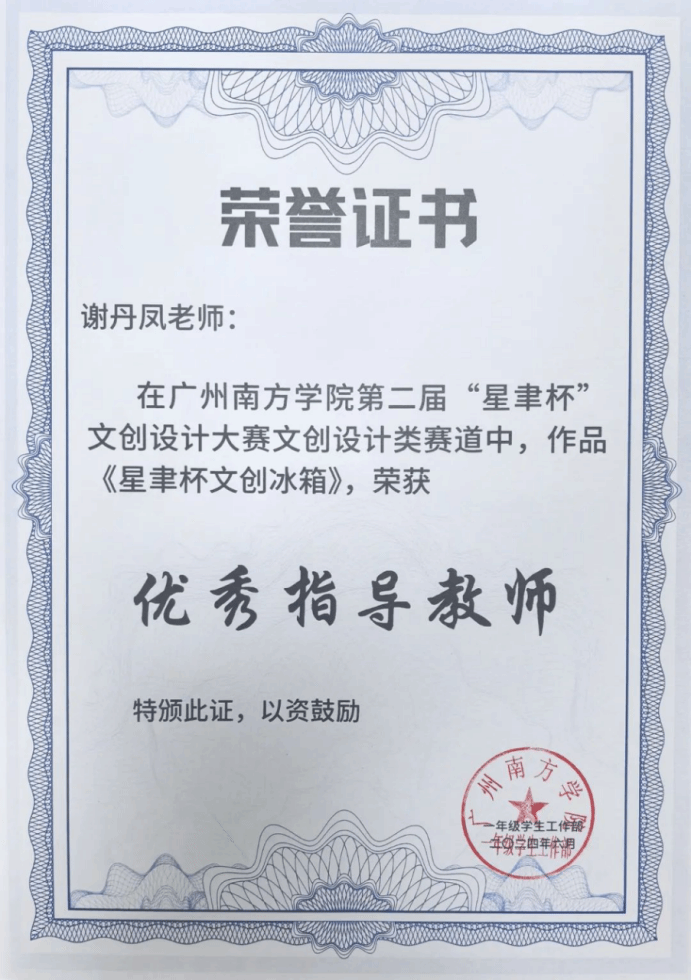 贝博官网谢丹凤老师获艾弗森贝博ballbet官网“星聿杯”文创设计大赛优秀指导老师