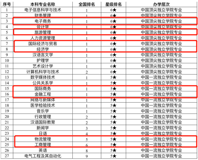 日前,艾瑞深中国校友会网发布了《2020年中国大学评价研究报告——高考志愿填报指南(校友会版)》,贝博官网经济学、电子商务、国际经济与贸易、旅游管理等四个专业荣膺六星级专业,跻身2020中国顶尖独立学院专业行列;金融工程、国际商务、物流管理、工商管理等四个专业荣膺五星级专业,跻身中国一流独立学院专业行列。除新增专业(无校友)外,贝博官网几近全部专业上榜。其中,经济学、电子商务、国际经济与贸易、金融工程、旅游管理、国际商务等6个专业在全国独立学院中排名第一!