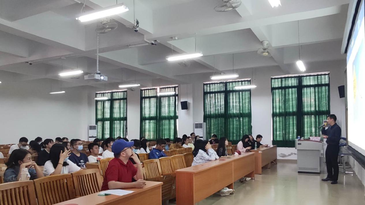 第二部分由陈宇聪师兄主讲,他结合自己毕业于瑞士酒店管理教育集团的亲身经历,向学生分享自己在国外的学习和生活,以及回国之后的工作情况。陈师兄给同学们的三点寄语:一、工作没有好坏之分,选择合适自己的工作才是最重要的;二、只要坚持做一件事,最后一定会收获;三、希望同学们在大学期间塑造胆大有魄力的人格。