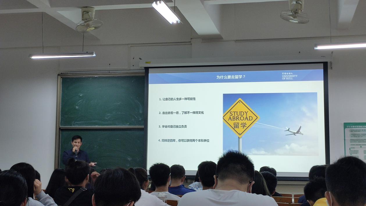 接下来,由Trady 为同学们介绍英国赫尔大学。Trady 从“为什么要留学?”这个问题作为宣讲会的切入点,并向大家介绍赫尔大学的地理位置、在赫尔这个城市生活以及在校生活。