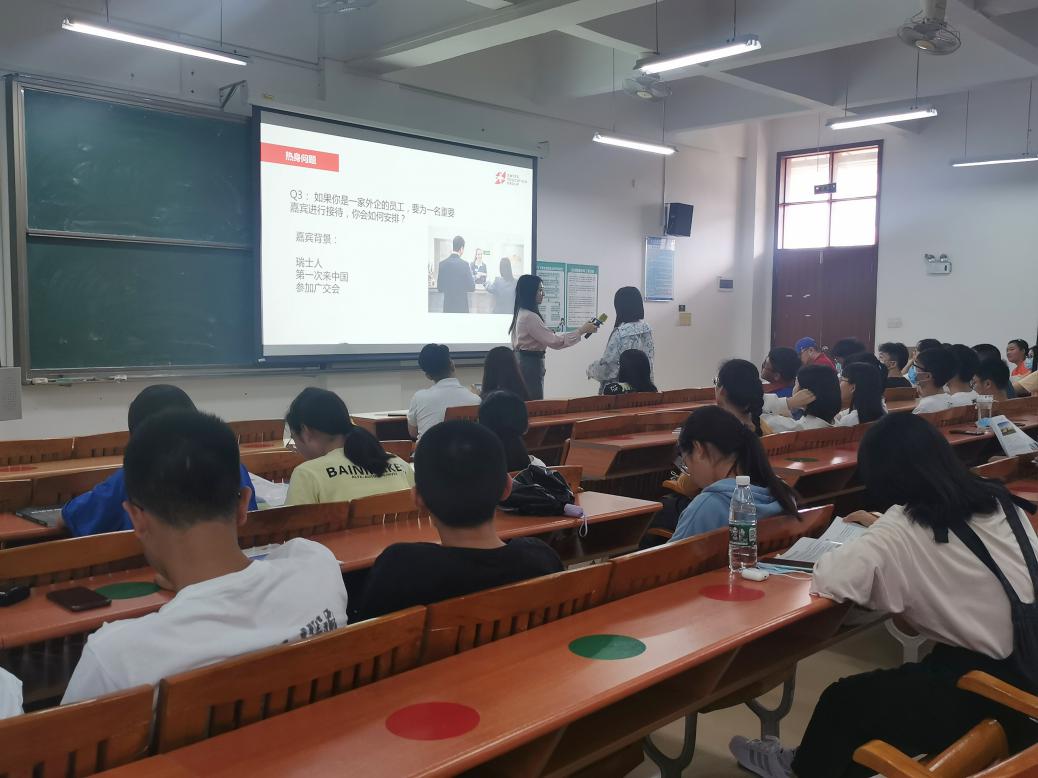 首先,SEG中国办事处的彭老师为大家介绍SEG瑞士酒店管理教育集团。她通过围绕瑞士以及酒店管理的话题设置的小问答,把同学们带入这个神奇的国度。