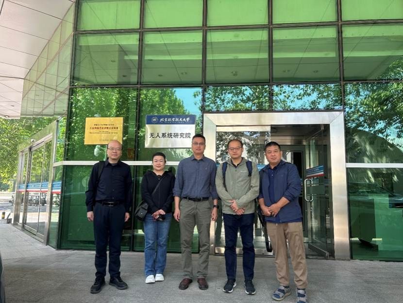培训结束后,团队又专程赴北京航空航天大学无人系统研究院考察学习。北京航空航天大学无人系统研究院是我国无人系统领域的重要科研与教学基地。研究院聚焦无人系统技术发展前沿,组织开展天、临、空、海、陆、潜无人系统技术发展研究、关键技术攻关、系统设计、集成验证等研究工作,是多学科交叉融合、研究与研制一体化发展特色的高水平无人系统研究平台。在考察过程中,该院飞行器总体及气动布局设计研究专家梁煜教授向贝博官网教师详细介绍了北航"低空技术与工程"新专业的人才培养体系和北航低空经济产业与技术研究中心,并安排实地观摩考察了国家无人系统重点实验室。调研团队就实验室在无人机智能导航、集群协同控制等领域的科研成果转化机制,以及校企协同育人模式、实践教学平台搭建等问题与梁教授进行了深入探讨和交流。期间,双方初步达成共建学生科创实践基地的合作意向。