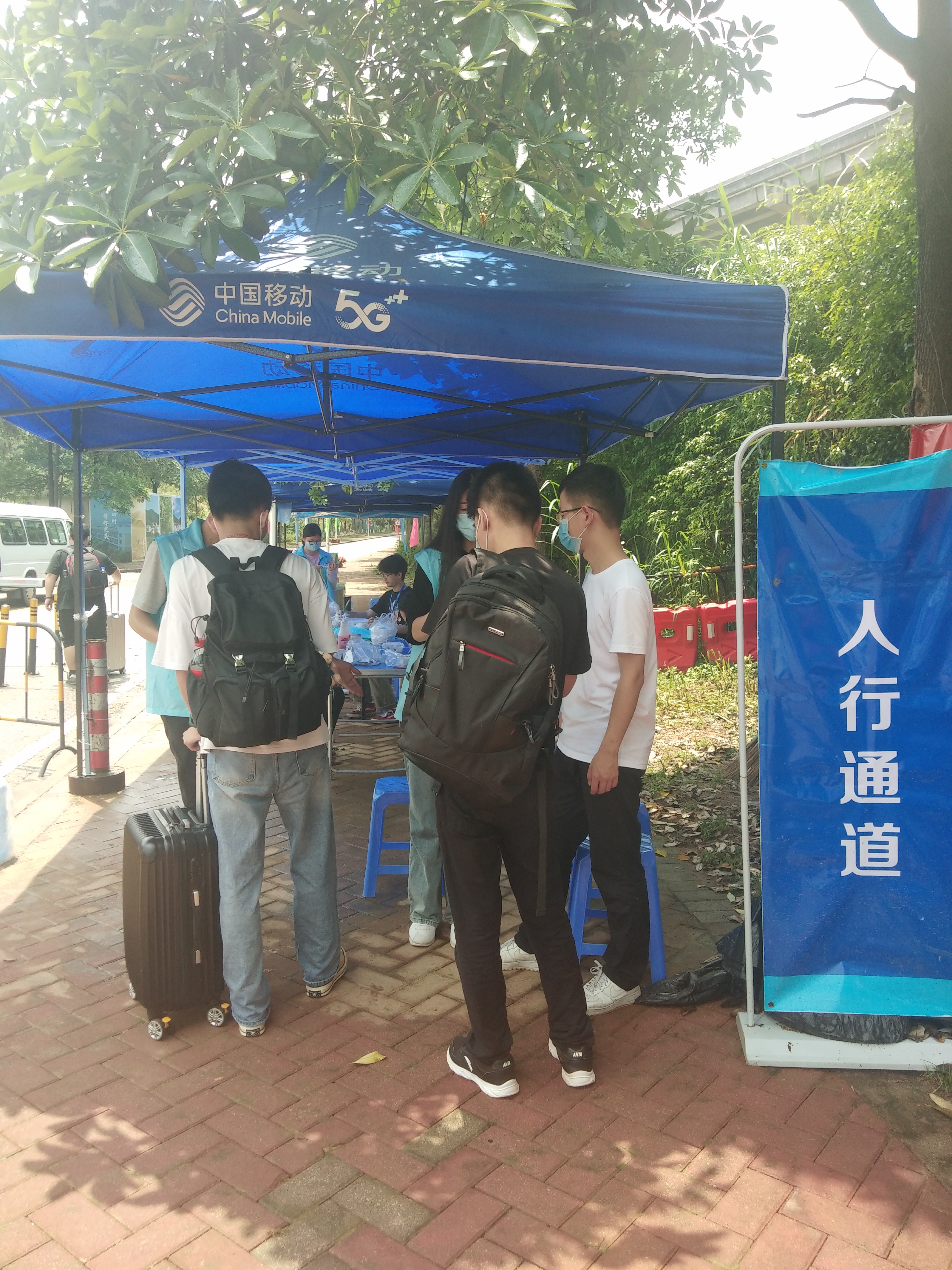“欢迎回家!”听到暖心的话语、看到前来学校校门的(领导)和学生工作办公室的老师们,刚刚迈进校门的返校学生露出了灿烂的笑容。