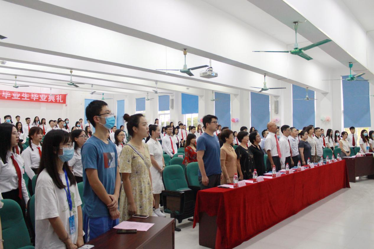 典礼最后一项,全体起立奏唱中山大学南方学院校歌,2020届学生毕业典礼也落下帷幕。