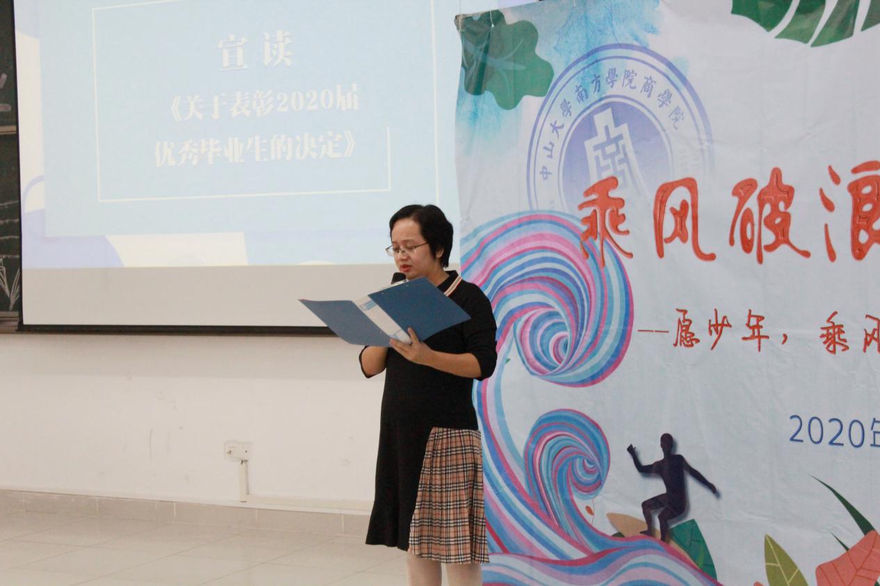 艾弗森贝博ballbet官网副院长钟肖英副教授宣读《关于表彰2020届优秀毕业生的决定》。