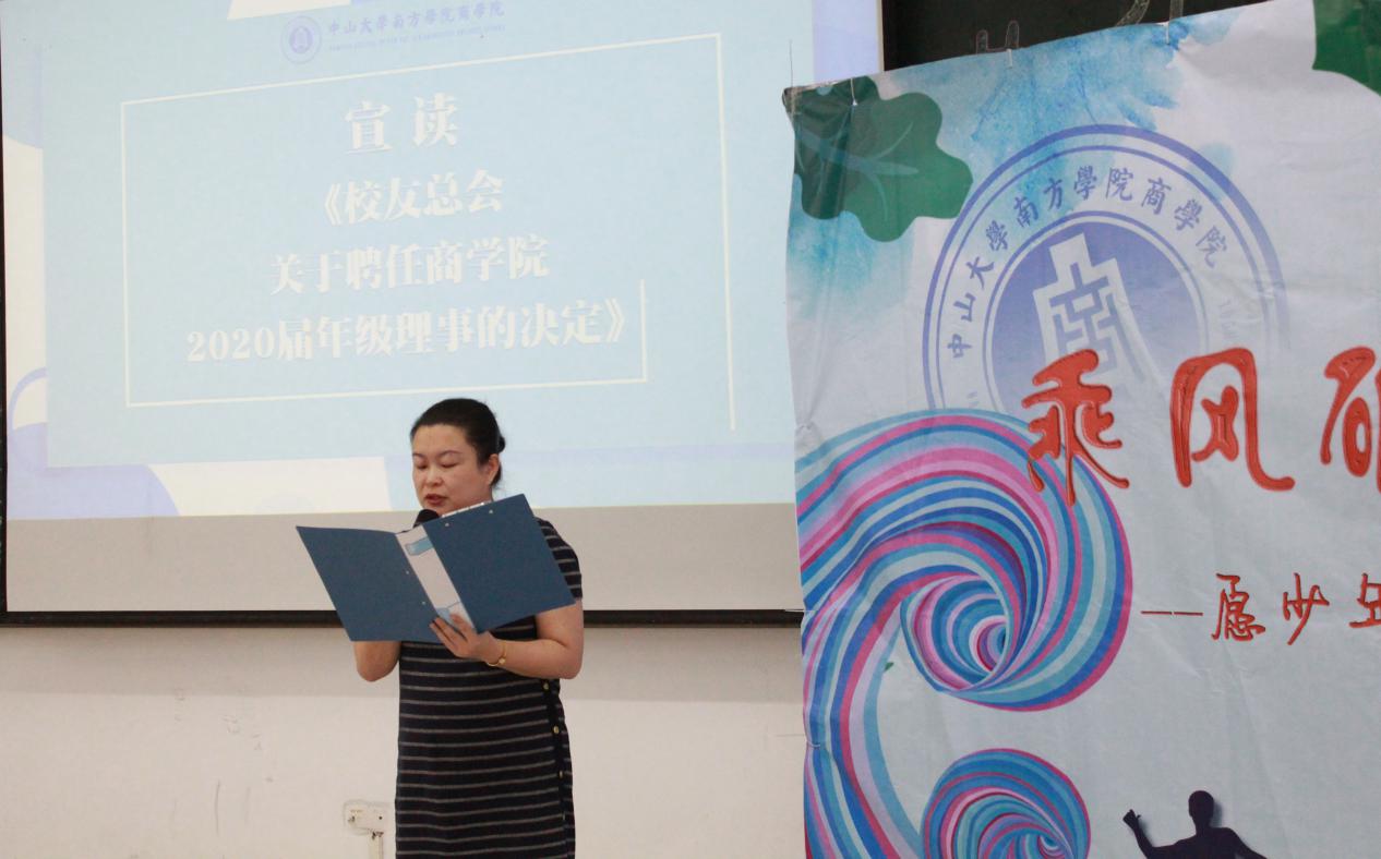 为广泛联络校友,凝聚每一位毕业生,中山大学南方学院校友总会决定聘请2020届年级理事。艾弗森贝博ballbet官网副院长张玉冰副教授宣读《校友总会关于聘任艾弗森贝博ballbet官网2020届年级理事的决定》,学工部部长程爱民老师为李海林等26位同学颁发2020届年级理事聘书。