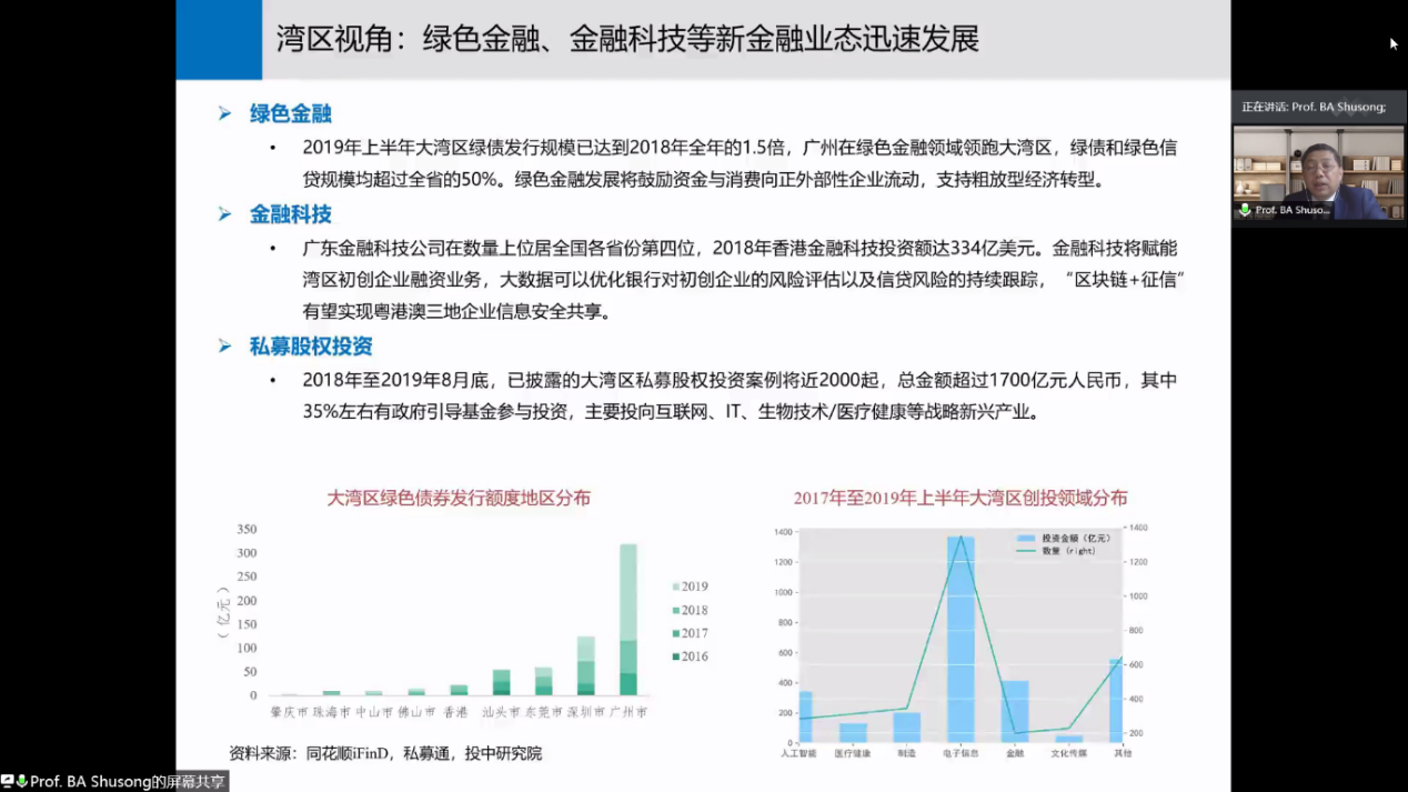 随后,他表示绿色金融和金融科技在大湾区的发展态势向好。大湾区拥有独特定位和比较优势,巨大的科创潜力为其发展数字经济奠定了良好基础。但它作为跨三种金融体制的城市群,金融业务的程序存在一定复杂性。巴教授认为,若是可以借鉴欧盟的制度设立方式,在大湾区建立“单一通行证”制度,让三种金融体制互相磨合,将对其跨境金融业务的发展大有助益。