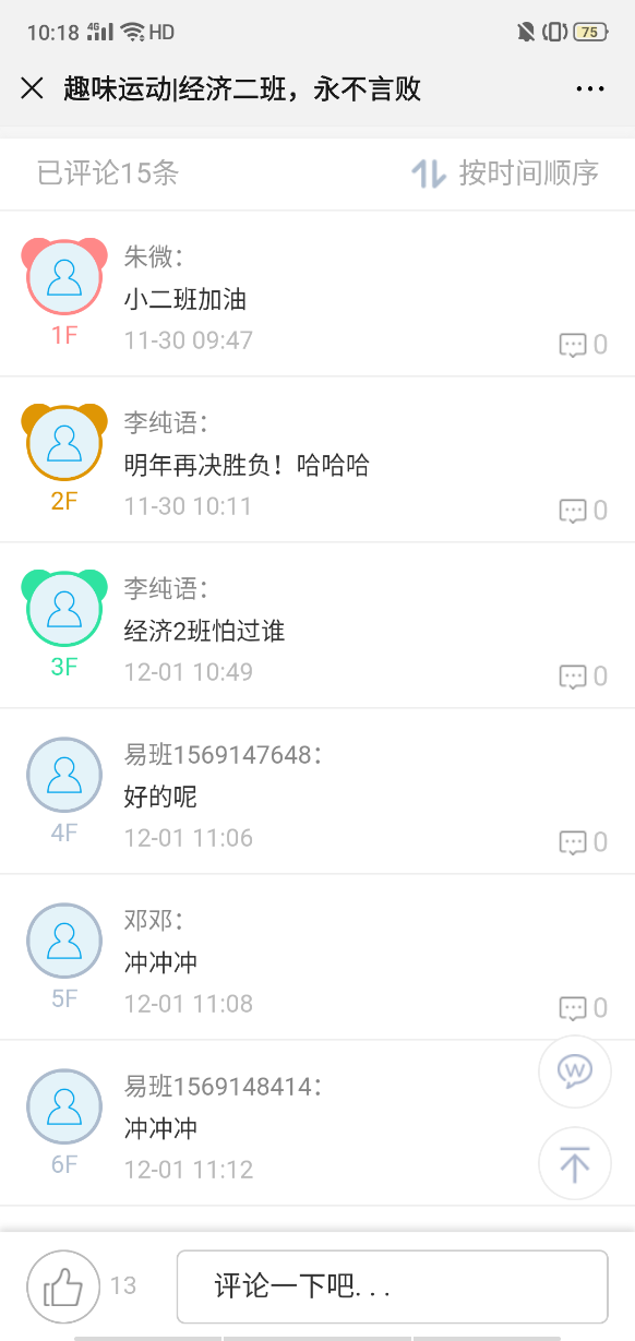 寒冷的天气没有浇灭同学们班级内部的热情,这次班级之间的易班评比,不仅可以充分发挥易班网络育人平台功能,让更多的同学进行有效地交流和学习,而且可以增强班级的凝聚力和班级协作精神,展示出良好的学风、班风,逐步构建刻苦学习、努力锻炼、互相关心、求实向上的班集体。?