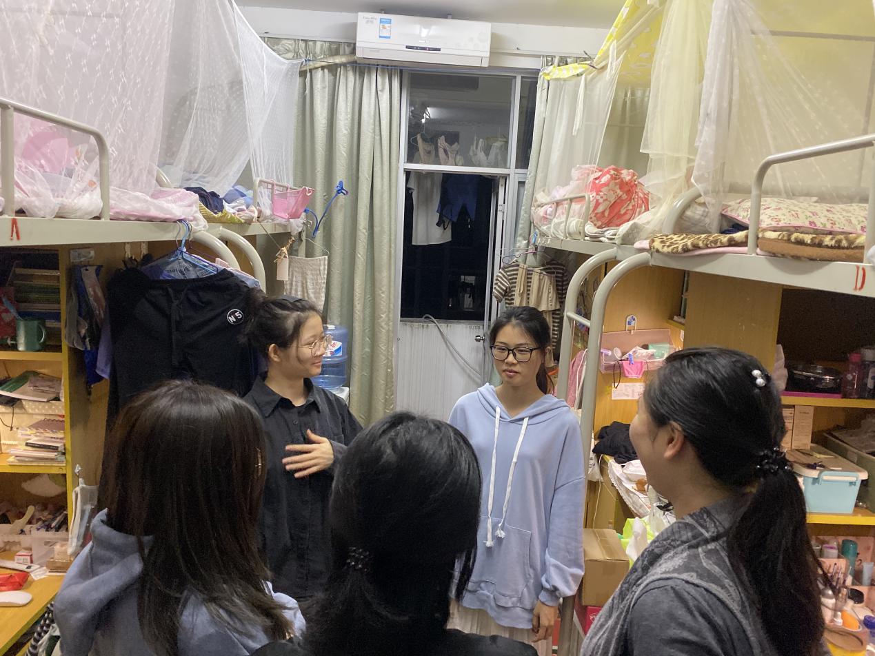 另一方面,辅导员与班委们关心着学生的心理建设问题。他们在走访中感受着和谐融洽的宿舍氛围,同学们相互帮助、相互包容。大家向辅导员表明自己近期学习生活上的困惑与压力,老师们认真倾听后加以耐心引导,给出对应的解决方法,并鼓励同学们多多建立、增强自信心,以积极美丽的姿态面对问题、迎接挑战。