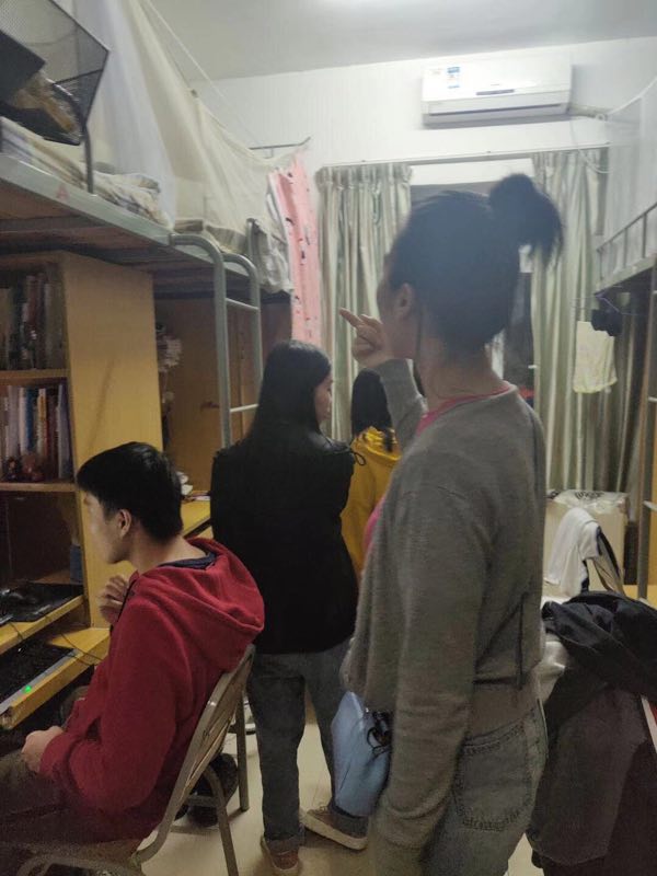 走访时,辅导员老师与班委主要对宿舍生活设施、安全措施、清洁卫生和环境布置等方面进行检查,就学习生活、寝室文明建设等内容和学生们进行交谈。在此工作中,他们发现卫生和内务总体情况良好,大部分宿舍都有卫生保洁的值班安排。辅导员老师对极个别存在相关问题的宿舍予以口头批评,并针对性地提出改善要求与建议。