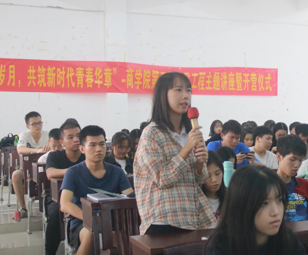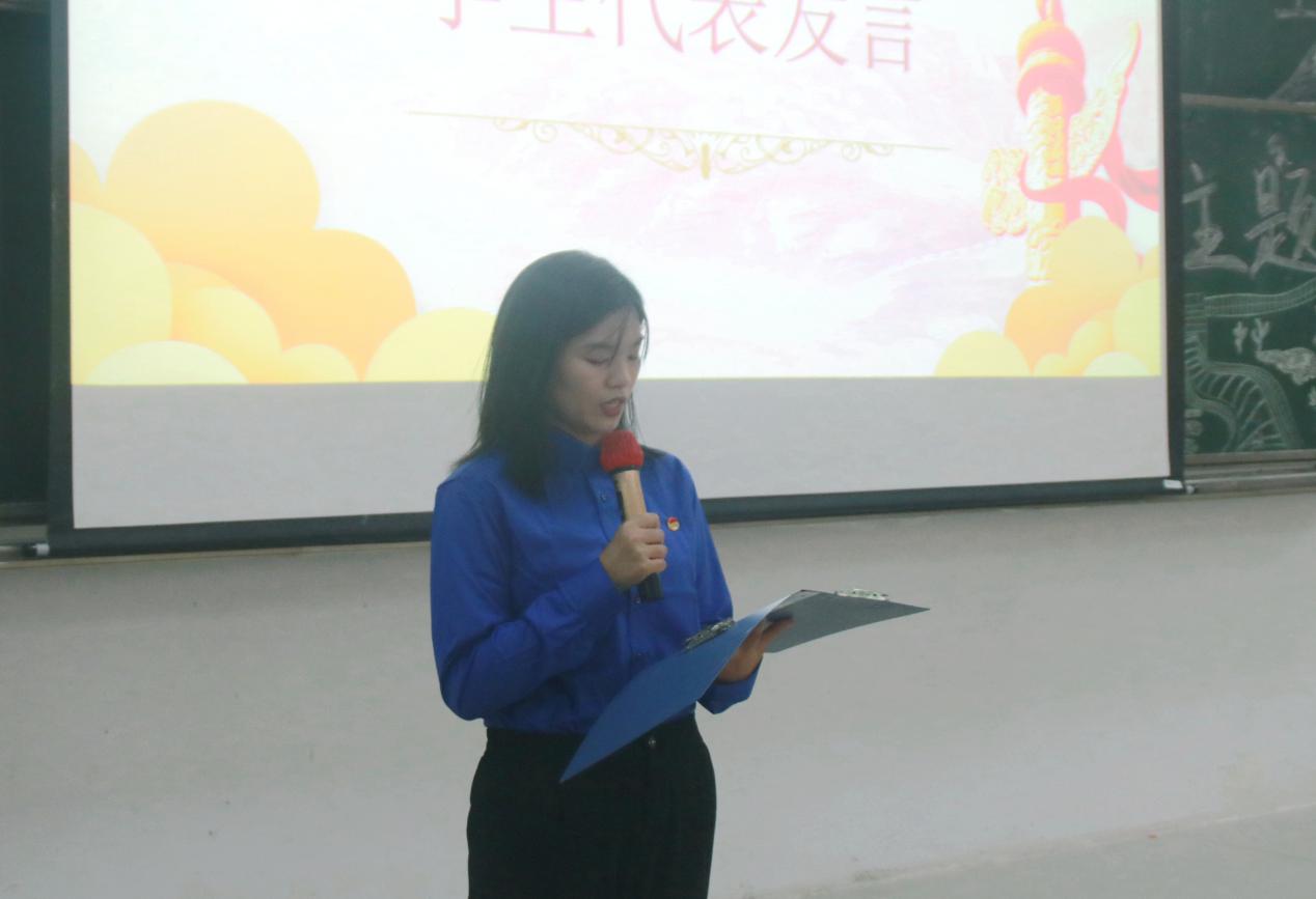 随后,学生代表青马工程团委学生副书记方婷婷进行发言。她对祖国走过上下五千年的发展道路由衷感到自豪与骄傲,并提出发展之重任已落到当代青年肩上,要抓住机遇、珍惜机会。青马工程正是一个良好平台,它有利于青年学生学习新知识,树立新观念,发散新思路,从而能坚定理想信念,提高综合素质,使其工作能力得到升华。