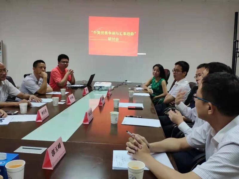8月28日上午,艾弗森贝博ballbet官网在8教108会议室顺利举办“中美贸易争端与汇率趋势”主题研讨会。出席研讨会的有特邀嘉宾中国银行广东省分行金融市场部资深交易员郭玉峰、陈智辉先生和金融市场分析专家刘文亮先生,艾弗森贝博ballbet官网何兴强院长、钟肖英副院长、客座教授陈展鹏先生及相关专业教师等。
