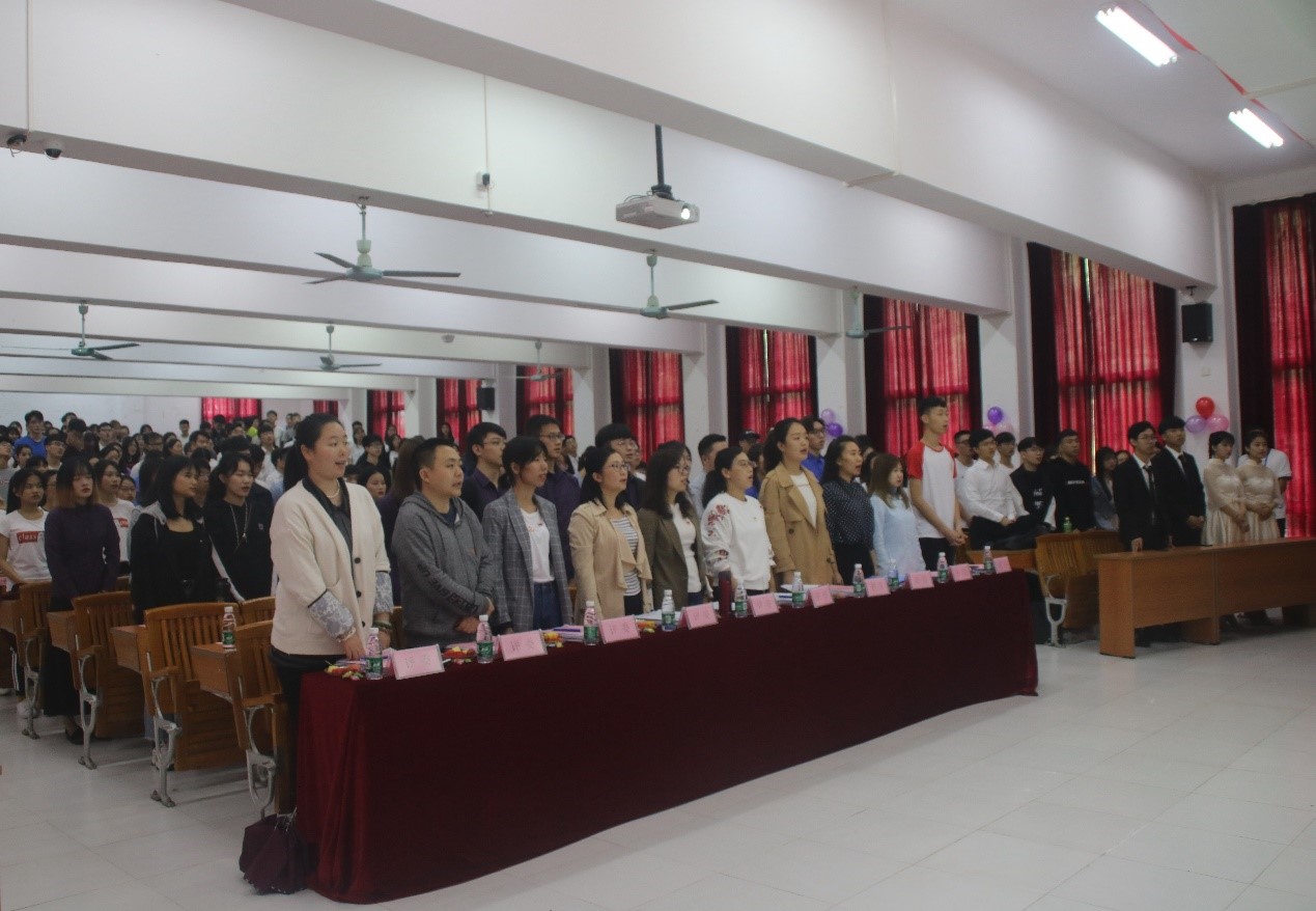 伴随着音乐声,全体与会人员起立奏唱《共青团团歌》,艾弗森贝博ballbet官网优秀红旗团支部评选大会也就此拉开帷幕。