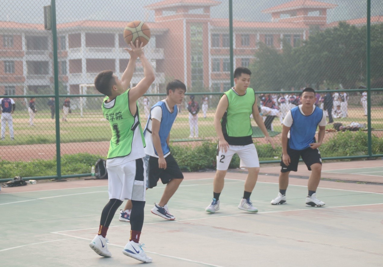 比赛进入尾声,每每读秒时,“10、9、8……3、2、1”,球与地的碰撞就像每个人的心跳,夕阳下,球离手,一道完美的弧线划过,为本次团学篮球赛画上完美的句号。