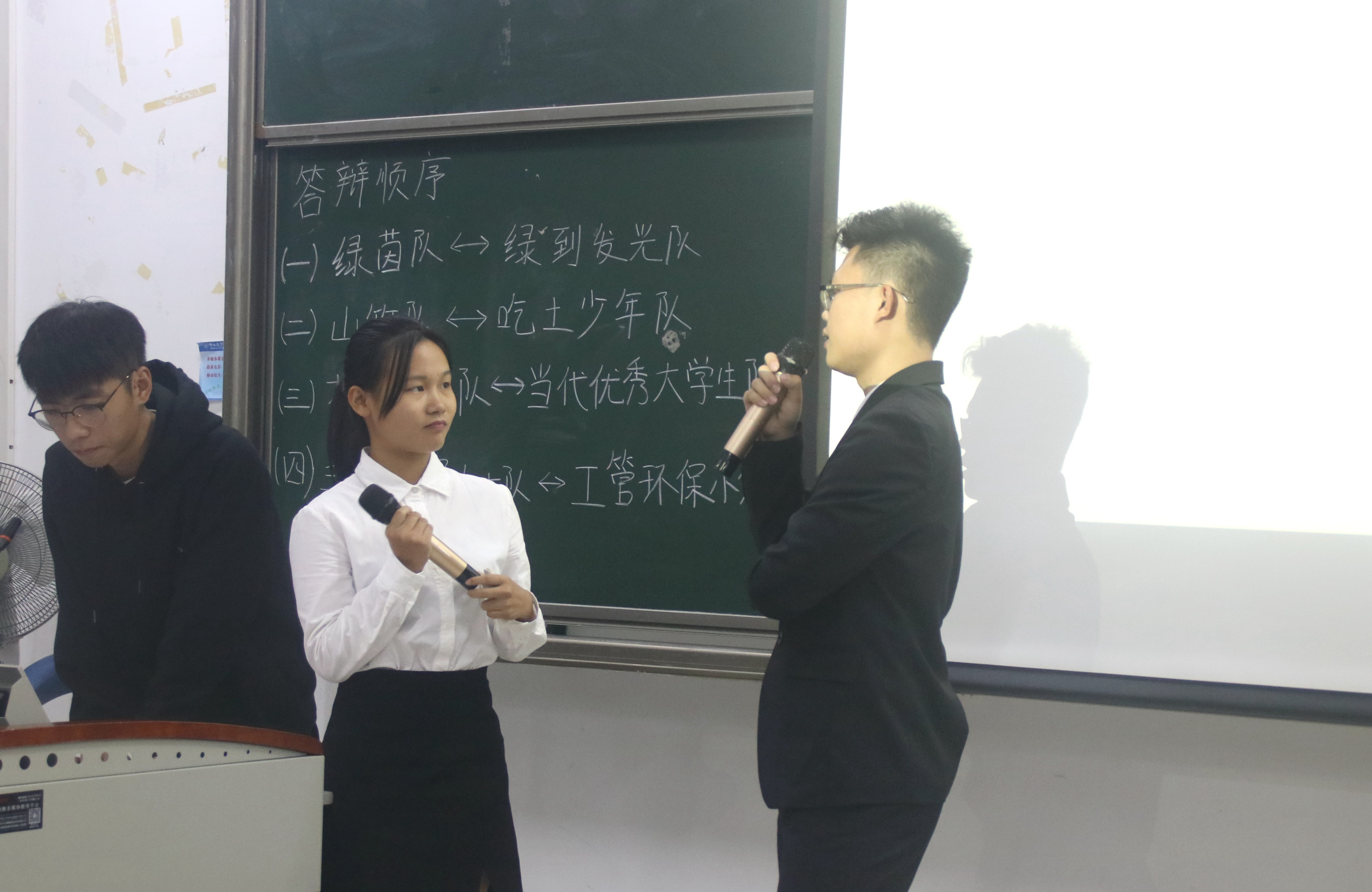 紧接着到了激烈人心的双方队伍答辩环节。双方队员在针对彼此方案中存在的问题展开激辩,不仅体现了大学生的朝气蓬勃与独辟新径的精神面貌,并且使其意识到了创新过程的艰难与工作的严谨性。