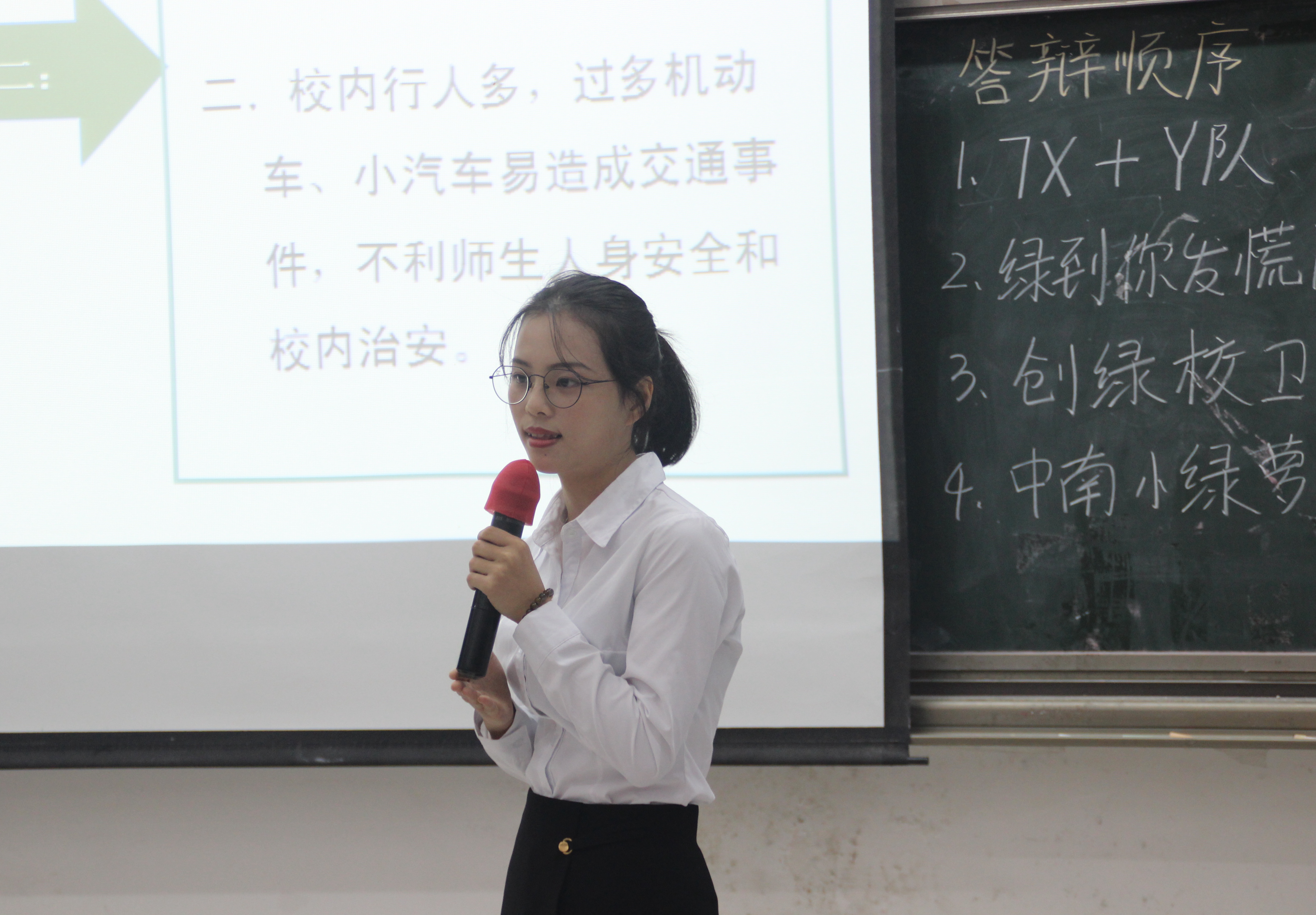 作为第一个出场的队伍,参赛者如蛟龙出海,镇定自若地介绍了操场草地对大学生体美劳发展体系的重要性及作用。由此,他们提出依次修整操场草坪的方案并号召各学院学生共同致力美化操场,为我们共同创建美丽绿色校园。