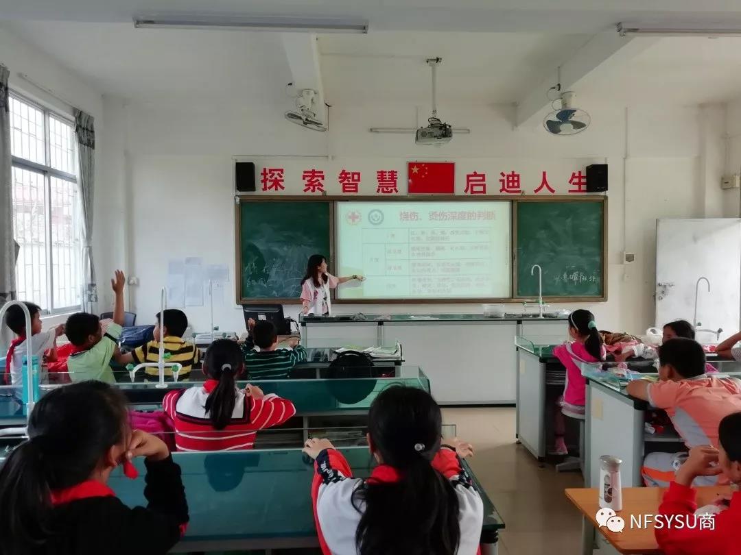 急救组通过PPT的形式为小朋友们进行急救知识的传授,主要教授的课程为烧伤烫伤的处理和预防、电梯安全问题以及公共安全问题。为提高小朋友对课程接受度,志愿者在文字授课的基础上结合图片与视频一并讲解。