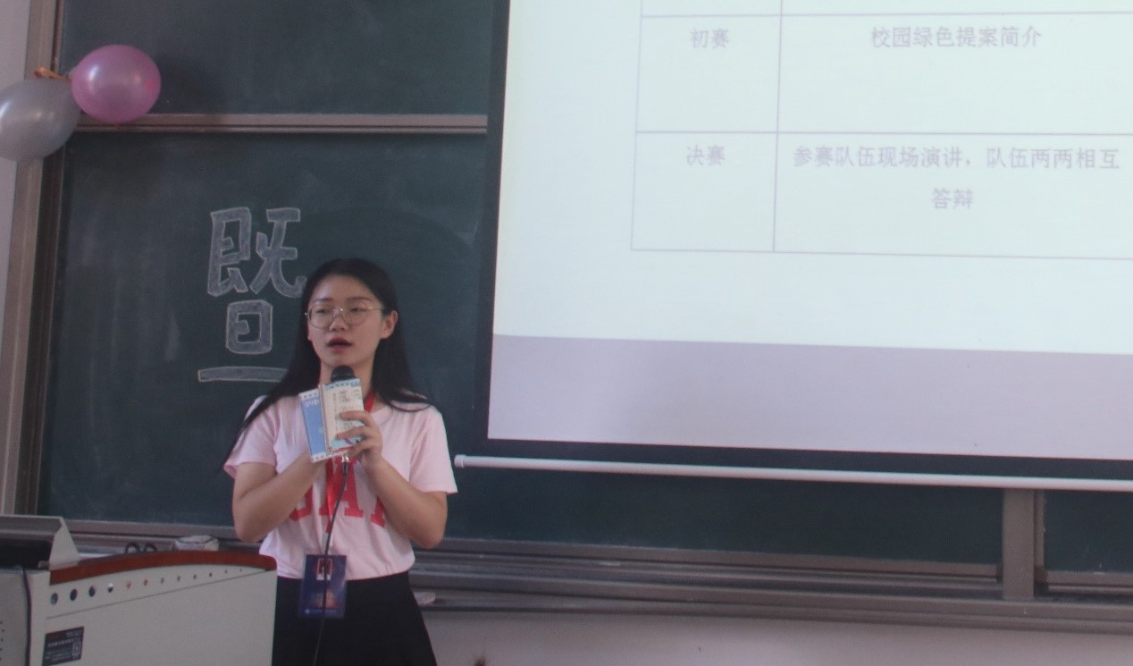 随后,学习部部长黄碧莹为32支参赛队伍和评委老师讲解本次比赛规则。黄碧莹同学对同学们积极为建设绿色校园而出谋划策表示热烈的欢迎,并为同学们详细分析本次比赛的主题、赛制、内容、提案模板等初赛说明,为参赛队伍解答潜藏疑惑,让参赛队伍及评委老师们对于比赛流程与评分形式更加了解。