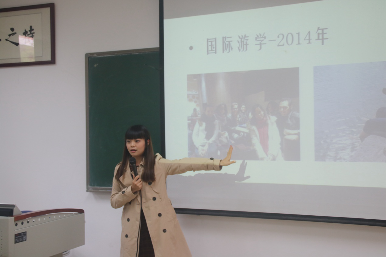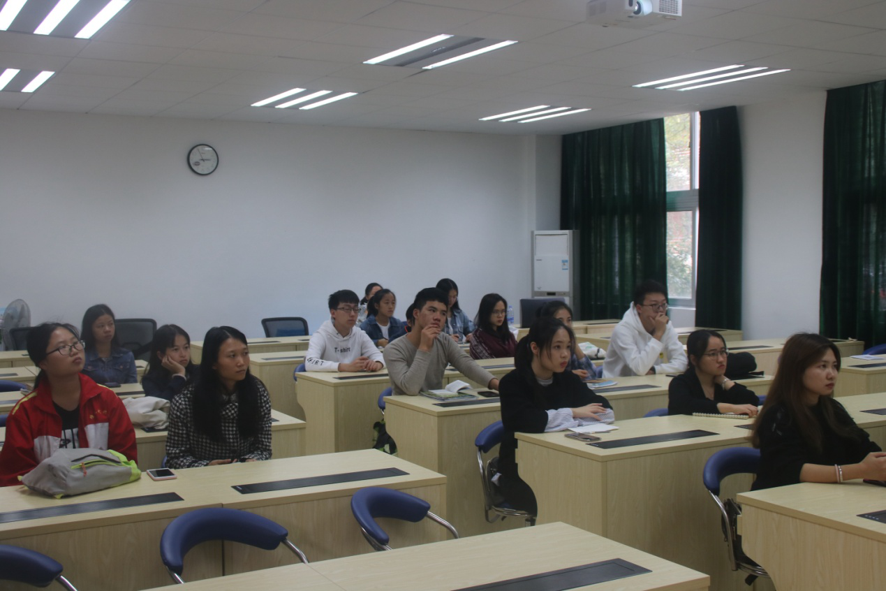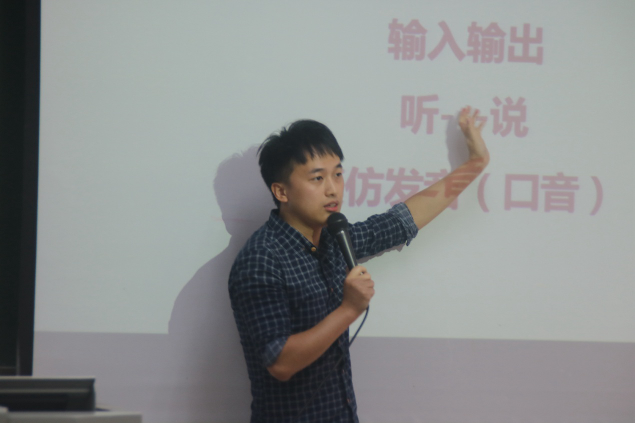 随后,杨志风学长介绍了他学习英语的感悟并分享了他在英国留学的趣事,用亲身经历来说明学习英语的重要性。与此同时,他用风趣幽默的语言讲述了在求学过程中遇到的各种困难,告诫同学们在求学途中要勇于面对困难。最后他为同学们提出有关英语学习的建议,帮助同学们提高的英语水平。