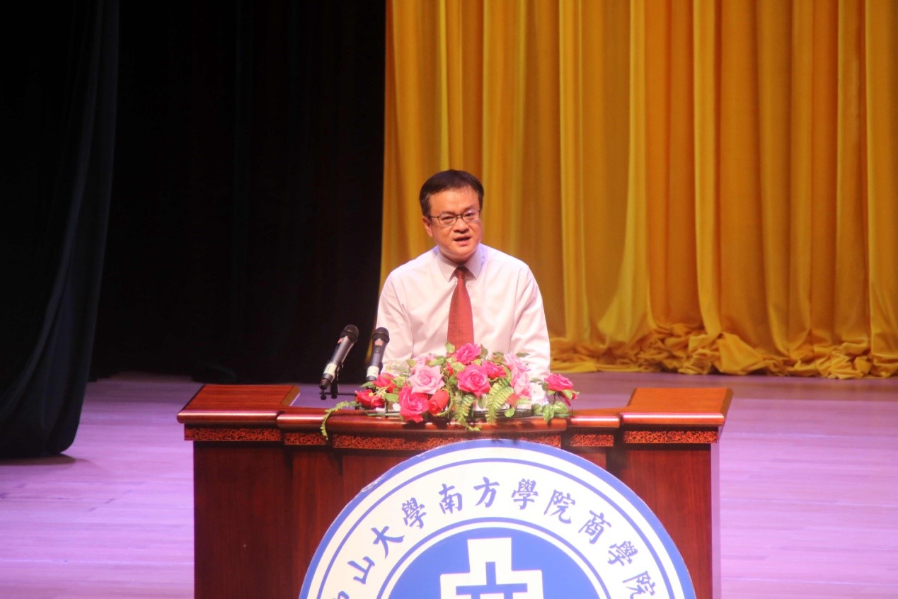 随后,校友代表钟政先生和教师代表张玉冰副教授依次发言。钟政师兄以幽默的口吻,为同学们展示了其创业的艰辛,鼓励同学们心怀梦想,要敢闯敢拼,专注认真,不言不弃。