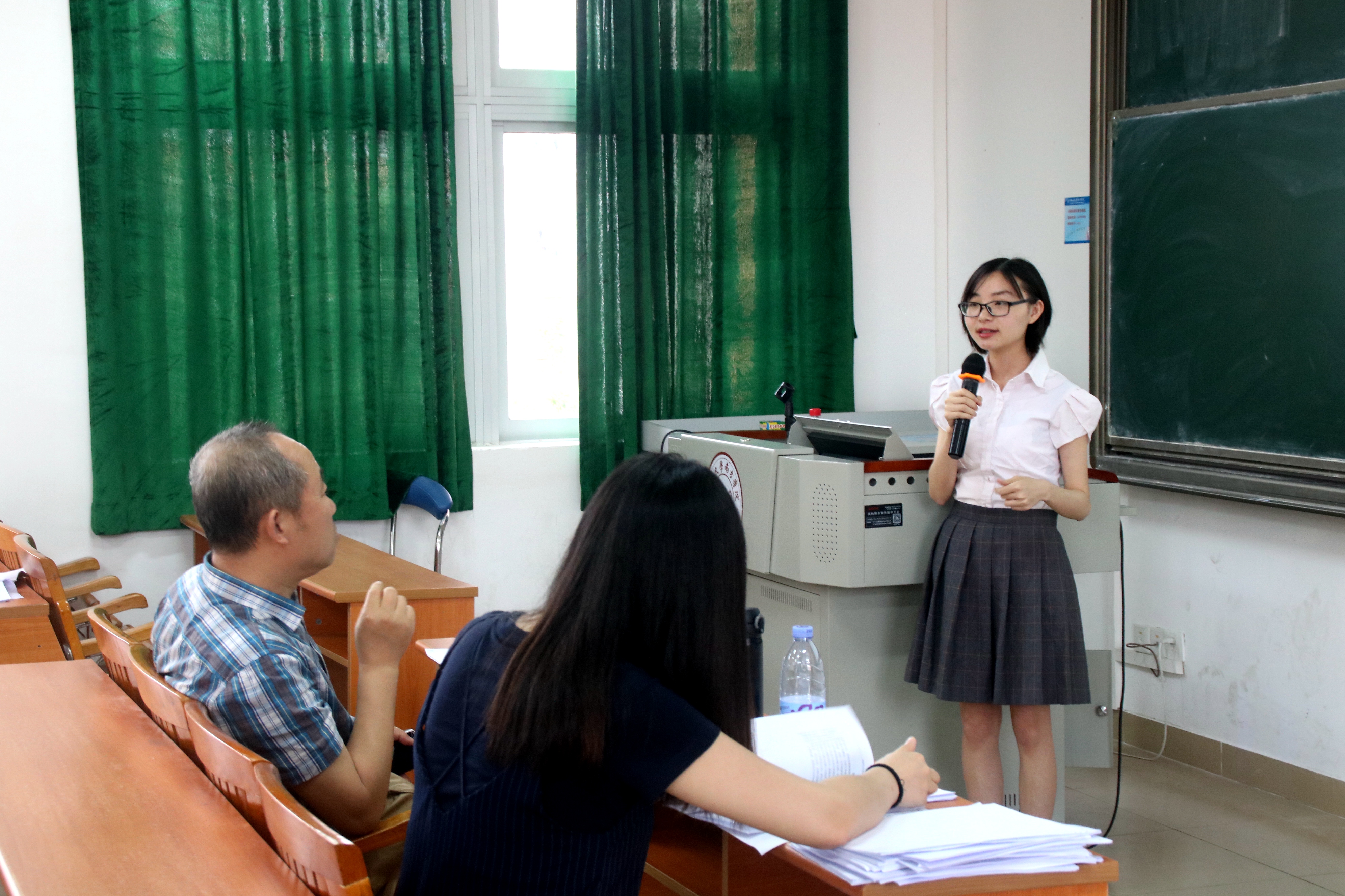 现场,毕业生们都身着整齐醒目的正装,精神抖擞,自信满满地等候毕业答辩。答辩按照学院的本科生毕业论文答辩程序有条不紊地进行着,参加答辩的毕业生们依次进行五分钟的论文陈述,陈述的方式主要为PPT展演,毕业生就其对论文中的研究背景、研究问题、研究方法以及论文结论进行全面而精炼的阐述。在短短五分钟内,他们图文并茂,激情演绎。