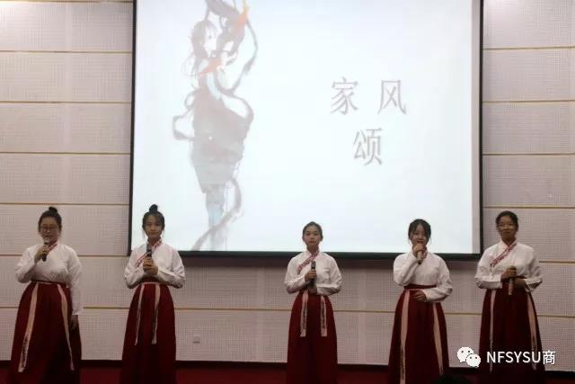 承清队给我们带来的《家风颂》让人眼目一新,选手们身着汉服出场,成为了比赛的一大亮点,清脆的女子朗诵赢得了观众的阵阵掌声。