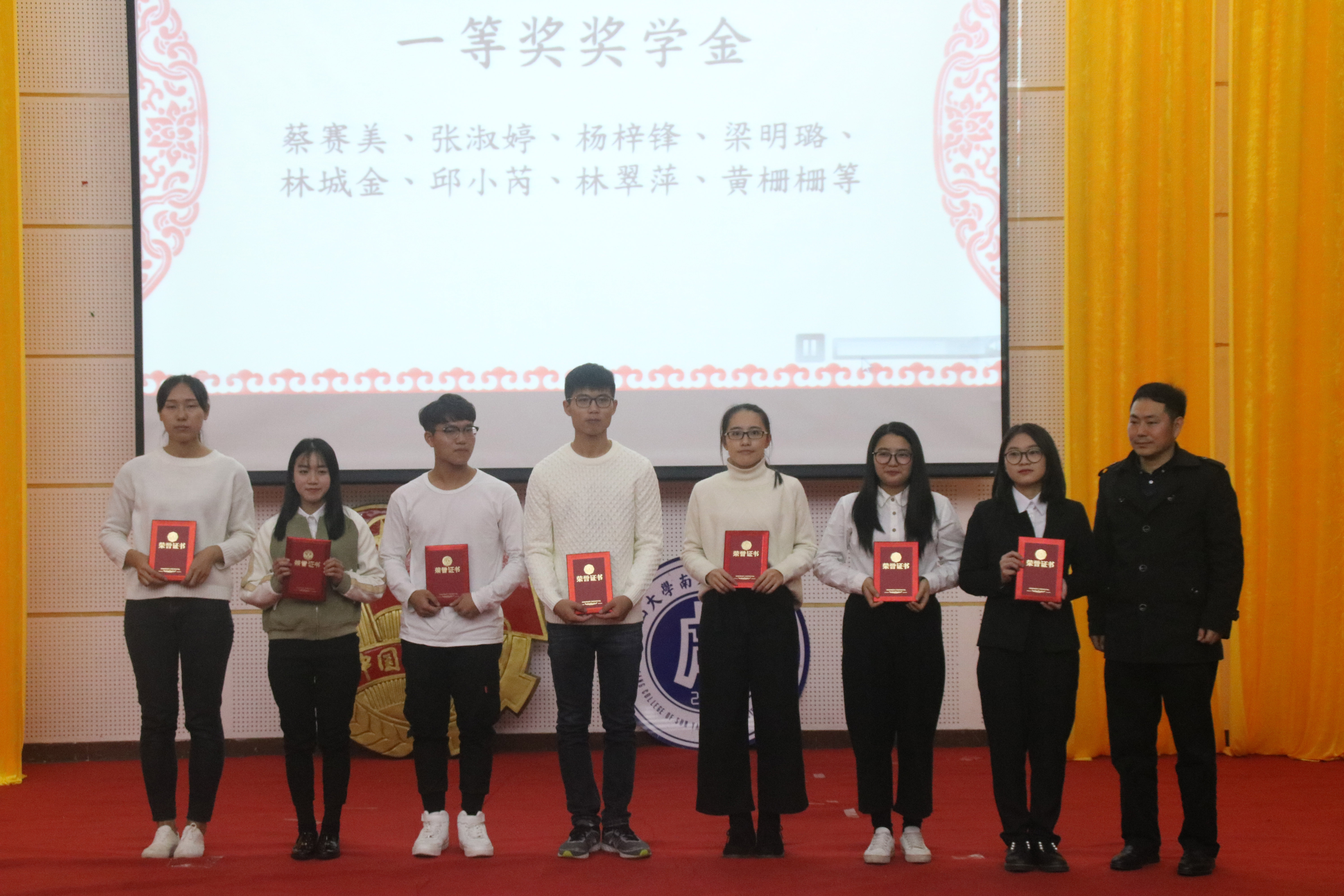 随着团歌奏响,我们也迎来了本次大会的高潮,即颁奖环节,主持人依次公布了国家一等,二等,三等奖学金与中南优秀团支部、优秀团干、优秀学干、优秀团员及积极分子的获奖名单,并由各位老师为获奖的同学们颁奖。获奖的同学精神抖擞,意气风发地走上了颁奖台,领取着他们辛勤耕耘收获的果实。