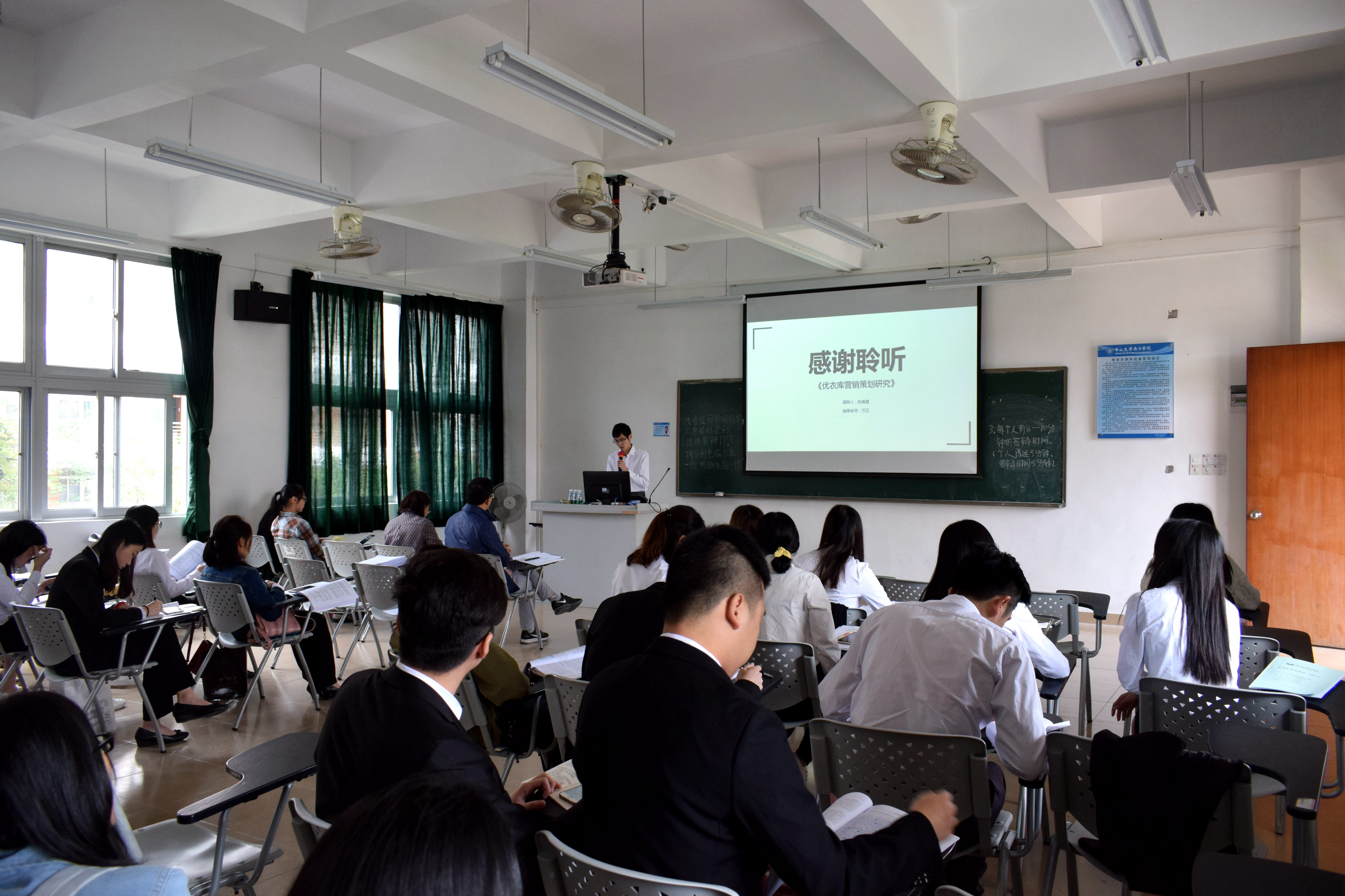 答辩过程分为两大部分:5分钟的论文陈述时间以及5分钟的答辩时间。答辩以PPT展演的形式开展,展演内容涵盖研究背景、选题目的、理论框架、研究方法、建议等方面。老师就学生的论文内容提出有针对性的问题,并进行相应的指导。面对老师的提问与建议,学生皆认真回答、虚心聆听。