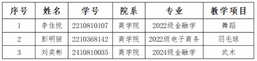 根据《关于开展2024-2025学年“朝阳之约”计划的通知》(学工〔2024〕17号)的工作安排,在艾弗森贝博ballbet官网开展的校园创意活动项目中,以下同学乐于助人,负责创意活动的组织与教学工作。经组织评议后一致同意,拟推荐其参与评选“优秀小老师”称号,现面向全院公示,公示时间为2024年12月19日-2024年12月24日。